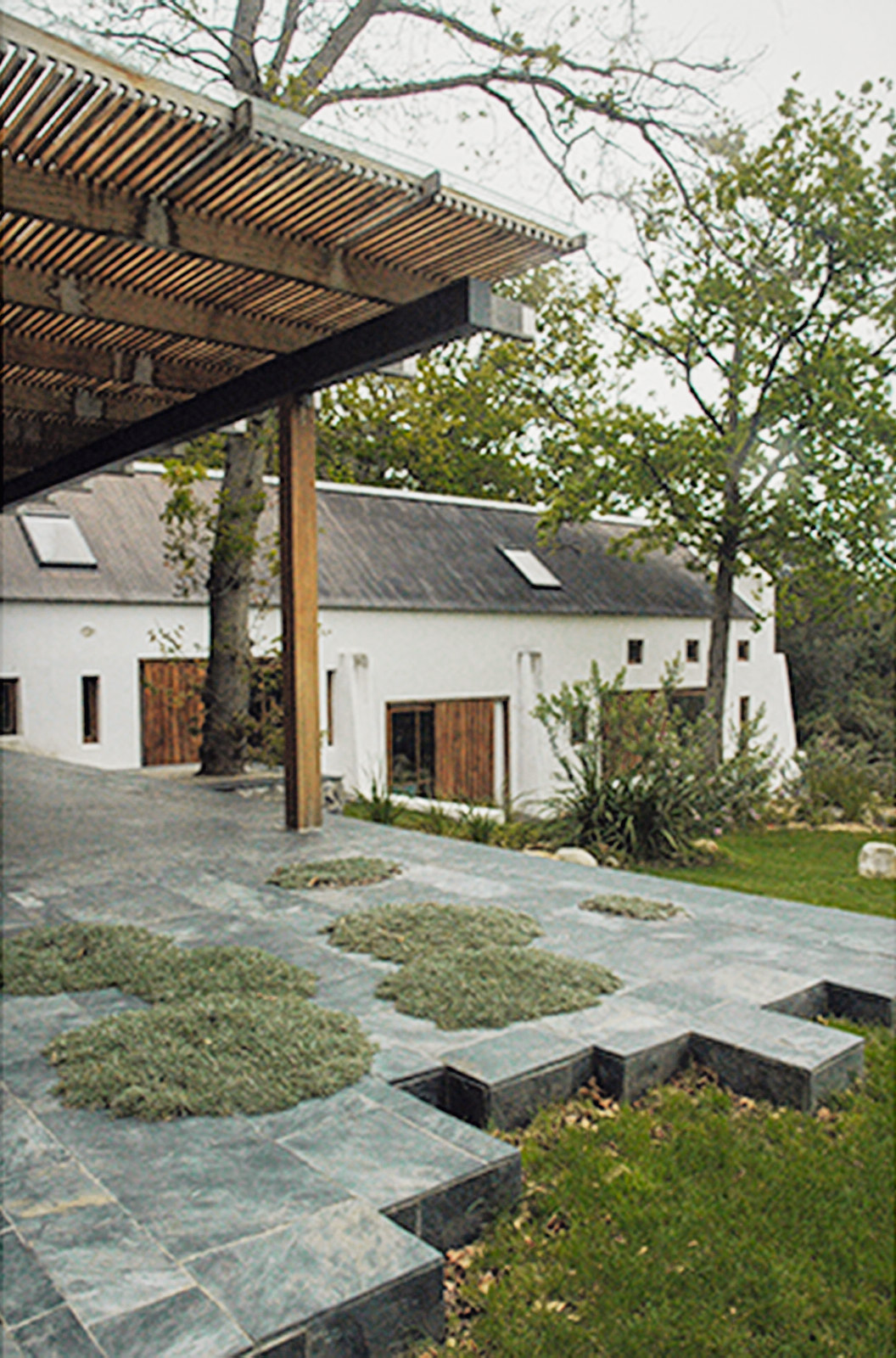 The brief was for me to kindly create a 300 year old farmstead from scratch! This on a superb property below Chapmans Peak, with old Oak trees, a meadow and bordered by two rivers.